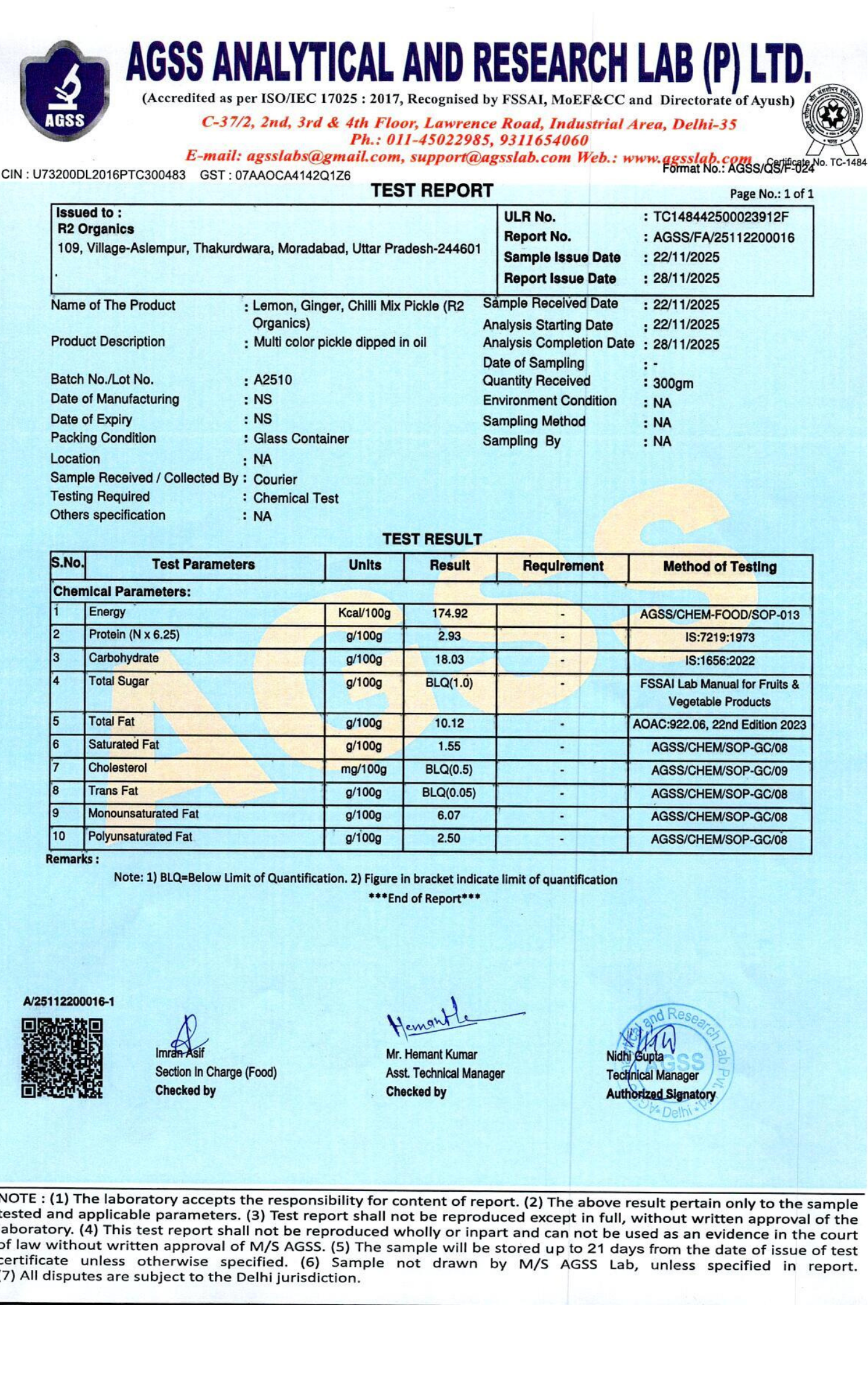 Add a zesty punch to your meals with this vibrant Lemon, Green Chilli & Ginger Mix Pickle from R2 Organics. Crafted from fresh, hand-picked lemons, fiery green chillies, and aromatic ginger, this pickle is bursting with natural flavors and traditional spices. Perfectly tangy, spicy, and slightly sweet, it complements rice, roti, parathas, and sandwiches, making every bite a delightful experience. Made with care, using authentic methods and no artificial preservatives, it’s a wholesome addition to your pantry that brings the taste of home to your table.